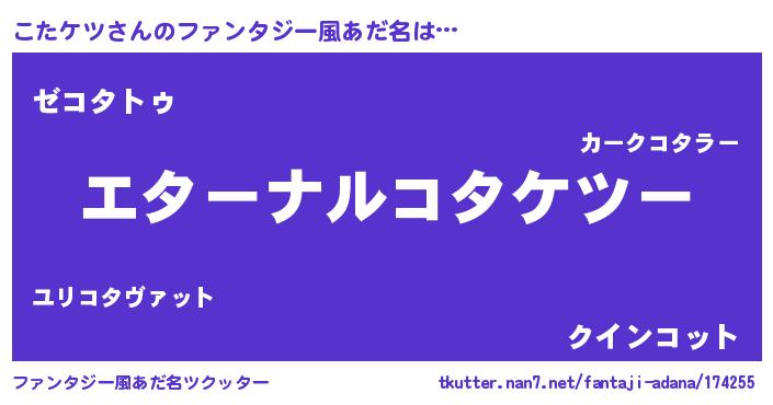 | 欧米人風あだ名 | 『こたケツクリステル』 |