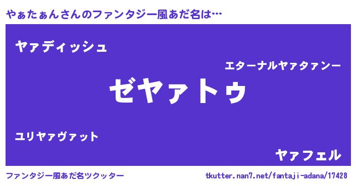 | 意味不明あだ名 | 『自称やぁたぁん』『永久保存やぁたぁん』 |