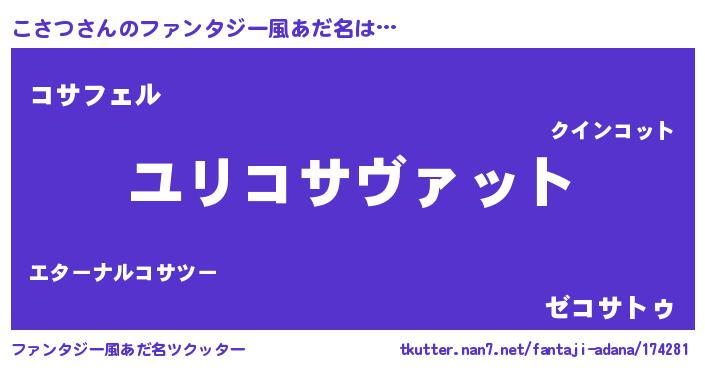| 意味不明あだ名 | 『めかぶ科こさつ属』『ペロリンこさつ』 |