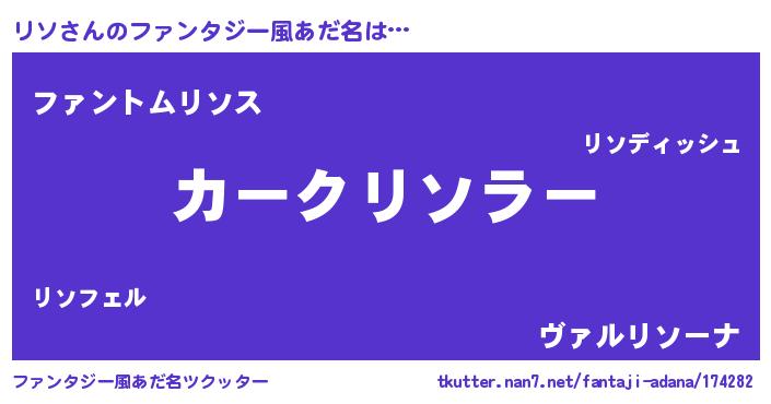 | 意味不明あだ名 | 『とにかく怪しいリソ』『永久保存リソ』 |