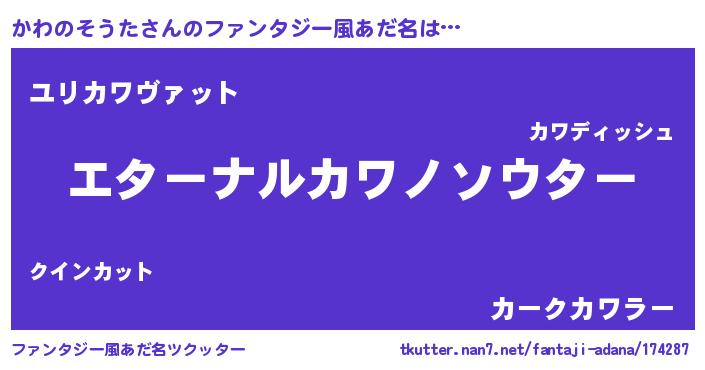 | 男性向けラノベタイトル風あだ名 | 『やはりかわのそうたの青春ラブコメはまちがっている 』 |