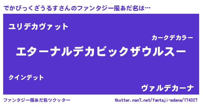| 意味不明あだ名 | 『でかびっくざうるすフォーエバー』 |