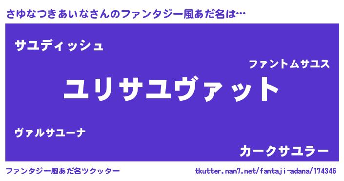 | 伝説のあだ名 | 『古より伝わる吟遊詩人さゆなつきあいな』 |