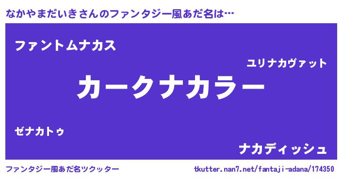 | 意味不明あだ名 | 『とにかく怪しいなかやまだいき』 |