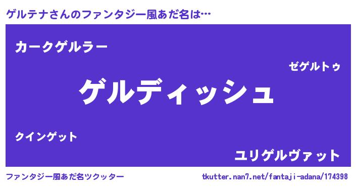 | 意味不明あだ名 | 『永久保存ゲルテナ』『自称ゲルテナ』 |