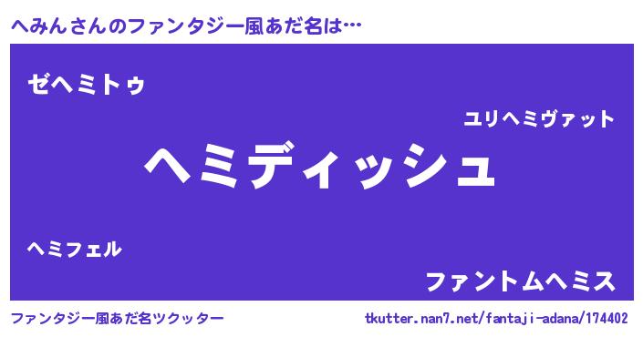 | 意味不明あだ名 | 『永久保存へみん』『自称へみん』 |