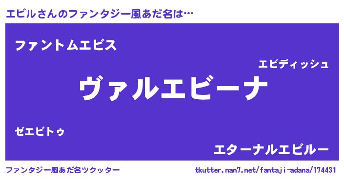 | ポケモン風あだ名 | 『エービイ』『ヒエビル』『ゼニエビ』 |