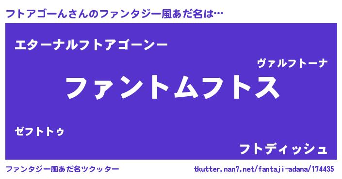 | 意味不明あだ名 | 『とにかく怪しいフトアゴーん』 |