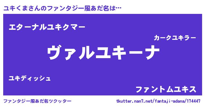 | 意味不明あだ名 | 『住所不定無職ユキくま(84歳)』 |
