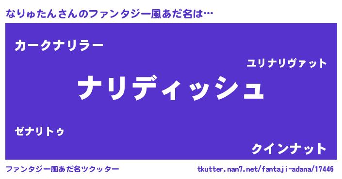 | 男性向けラノベタイトル風あだ名 | 『なりゅたんという概念が存在しない退屈な世界 』 |