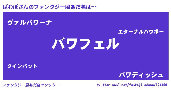 | 男性向けラノベタイトル風あだ名 | 『ばわぽの憂鬱』『魔弾の王とばわぽ』 |