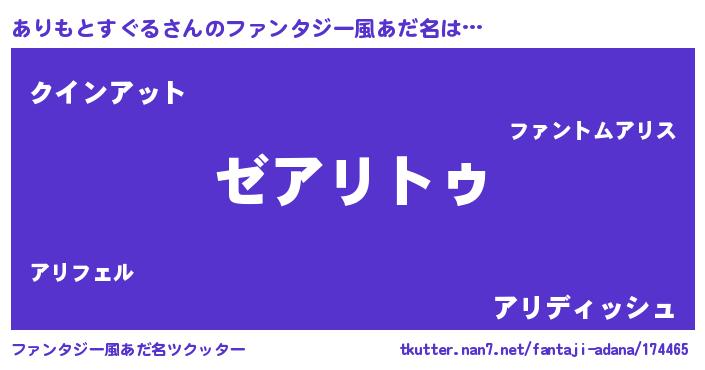 | 意味不明あだ名 | 『自称ありもとすぐる』 |