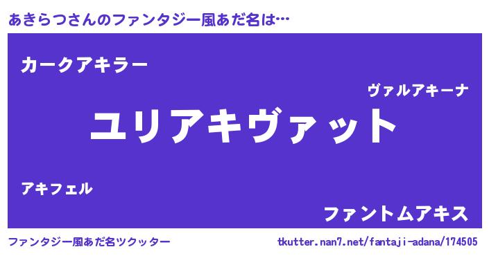 | ヒーロー風カッコイイあだ名 | 『銀牙騎士アキ』『仮面アキダー』 |