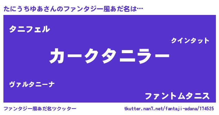 | 胡散臭い通販商品みたいなあだ名 | 『億万長者になれるブレスレット…その名も「たにうちゆあ」』 |