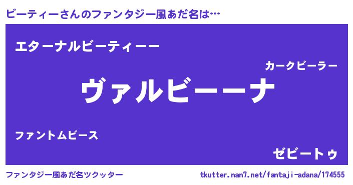 | ポケモン風あだ名 | 『ビーーイ』『ビーテダネ』 |