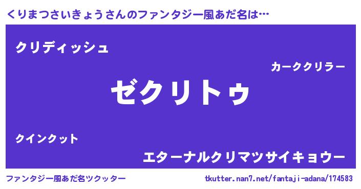 | 欧米人風あだ名 | 『ケンブリッジくりまつさいきょう』 |