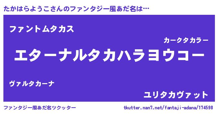 | 意味不明あだ名 | 『たかはらようこフォーエバー』 |