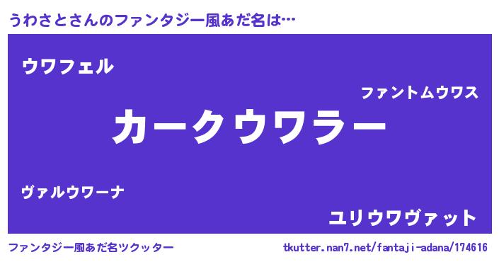 | 自動車の名前っぽいあだ名 | 『フェウーワ』『ウワティマ』 |