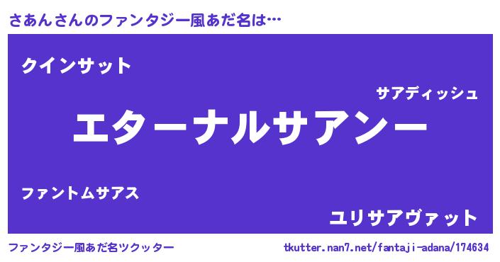 | 女子向けラノベタイトル風あだ名 | 『さあんの雑貨屋さん』『さあん恋絵巻』 |