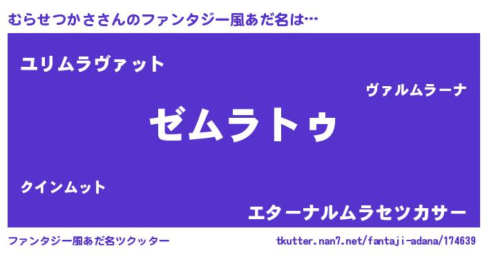 | 意味不明あだ名 | 『自称むらせつかさ』 |