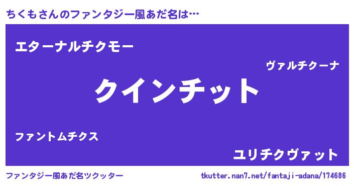 | 男性向けラノベタイトル風あだ名 | 『ノーゲーム・ノーチクモ』 |