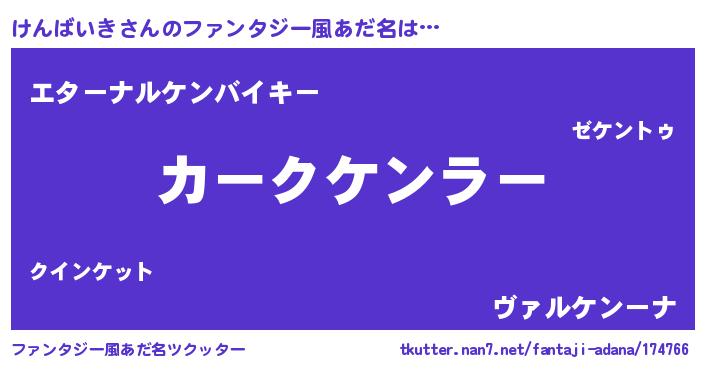 | 意味不明あだ名 | 『けんばいきフォーエバー』 |