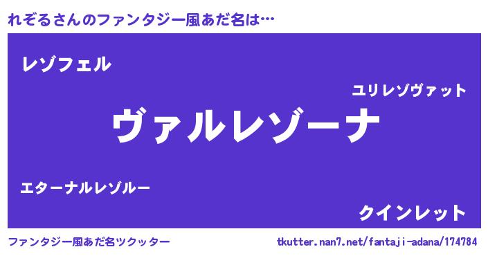 | 男性向けラノベタイトル風あだ名 | 『魔弾の王とれぞる』 |