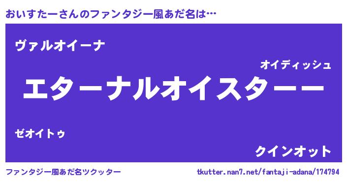 | 意味不明あだ名 | 『おいすたーフォーエバー』 |