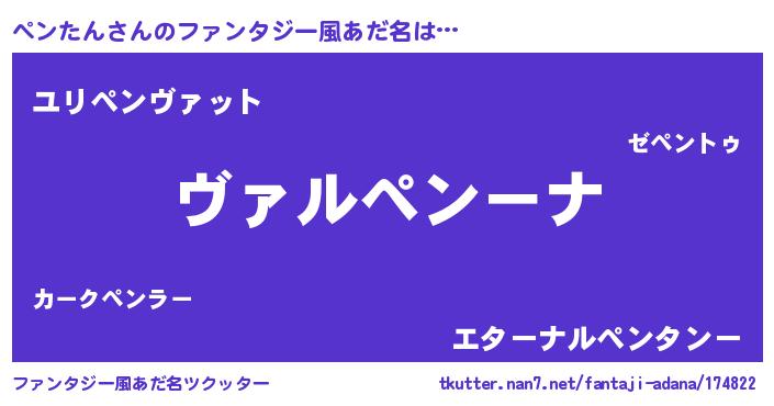 | 女子向けラノベタイトル風あだ名 | 『乙女ゲームの破滅フラグしかない悪役ペンたんに転生してしまった…』 |