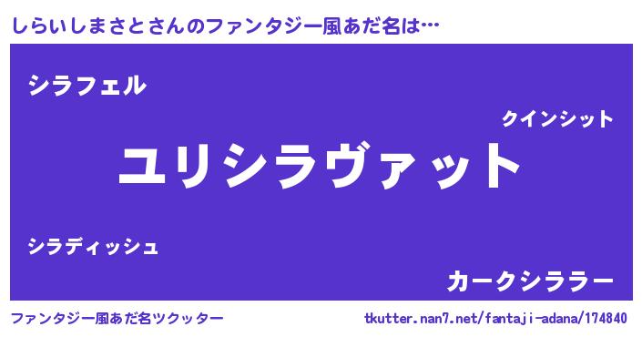 | 自動車の名前っぽいあだ名 | 『シールスライス』『シラティマ』 |