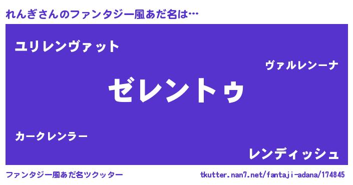 | 男性向けラノベタイトル風あだ名 | 『Re:れんぎから始める異世界生活』 |