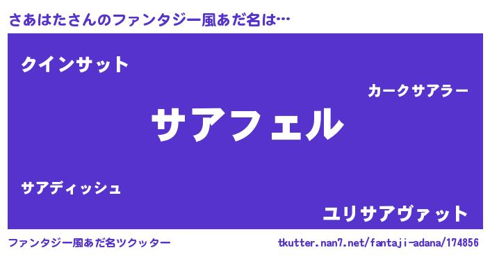| 欧米人風あだ名 | 『アンジェラ・さあはた』 |