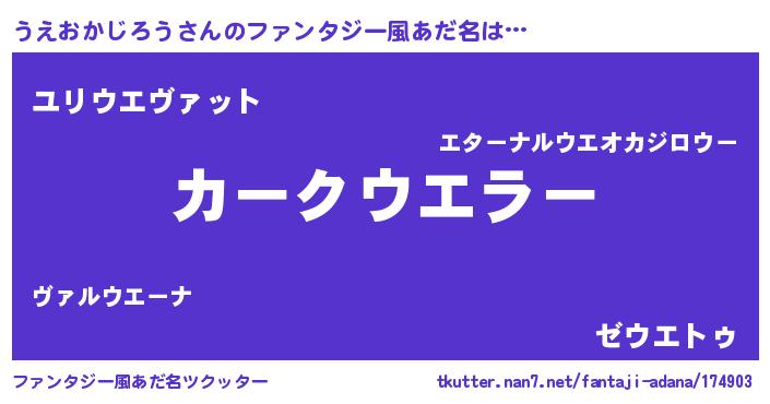 | 欧米人風あだ名 | 『うえおかじろう・ステッグマイヤー』 |
