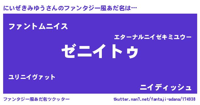 | 意味不明あだ名 | 『自称にいぜきみゆう』 |