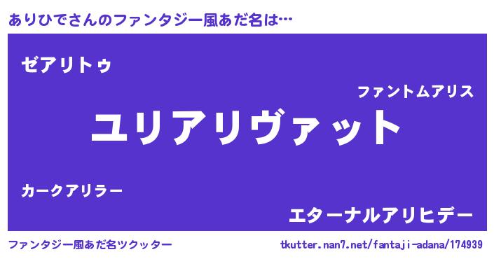 | 男性向けラノベタイトル風あだ名 | 『ありひでに滅ぼされるだけの簡単なお仕事です』 |