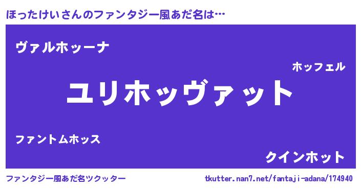 | 女子向けラノベタイトル風あだ名 | 『ほったけいの玉の輿計画!』 |