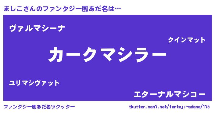 | 欧米人風あだ名 | 『ましこ・ステッグマイヤー』 |