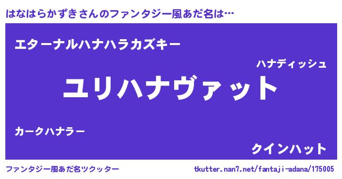 | 男性向けラノベタイトル風あだ名 | 『ハナハラカズキスレイヤー』 |