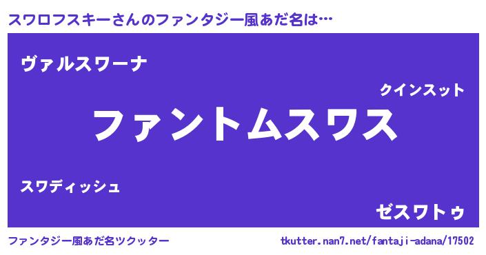 | ヘコむあだ名 | 『スワっぺ』『スワロフスキー(震え声)』 |