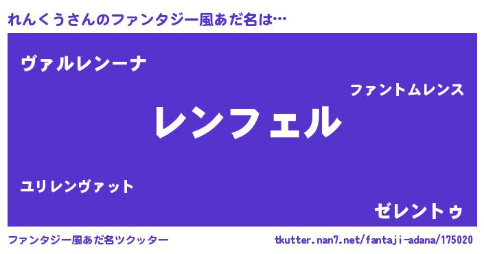 | 意味不明あだ名 | 『ペロリンれんくう』『自称れんくう』 |