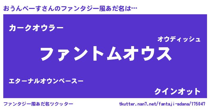 | 女子向けラノベタイトル風あだ名 | 『おうんぺーす様がみてる』 |
