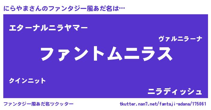| ポケモン風あだ名 | 『ヒニラヤマ』『ニラヤダネ』 |