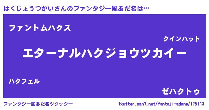 | 意味不明あだ名 | 『はくじょうつかいフォーエバー』 |