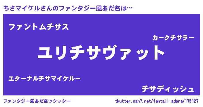| 男性向けラノベタイトル風あだ名 | 『転生したらちさマイケルだった件』 |