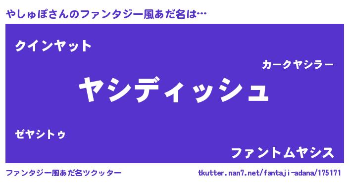 | 意味不明あだ名 | 『永久保存やしゅぽ』『自称やしゅぽ』 |