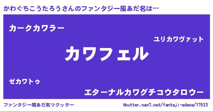 | 男性向けラノベタイトル風あだ名 | 『カワグチコウタロウアートオンライン』 |
