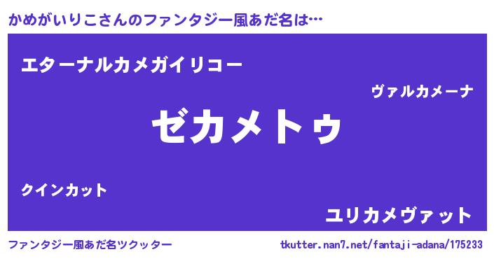 | 男性向けラノベタイトル風あだ名 | 『魔法科高校のかめがいりこ』 |