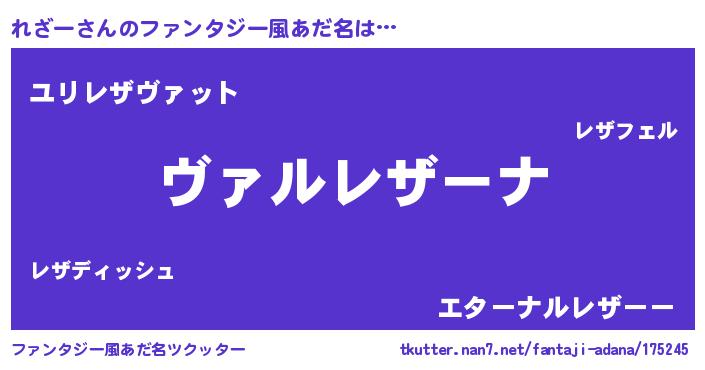 | 男性向けラノベタイトル風あだ名 | 『魔弾の王とれざー』『れざーの憂鬱』 |