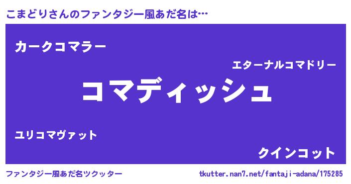 | ヘコむあだ名 | 『こまどり(笑)』『つくし』『こまお』 |