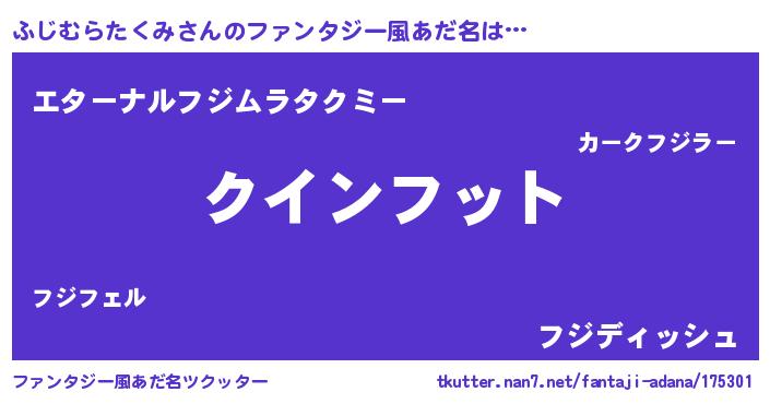 | 女子向けラノベタイトル風あだ名 | 『死神ふじむらたくみの再婚』 |
